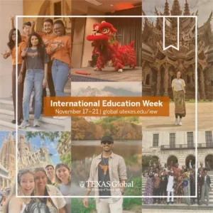 International Education Week (IEW) recognizes the benefits of international education and exchange worldwide. At The University of Texas at Austin, we mark this nationally celebrated initiative by showcasing global engagement through internationally focused programs, discussions, and events across campus. IEW will take place from November 17-21, 2025.
